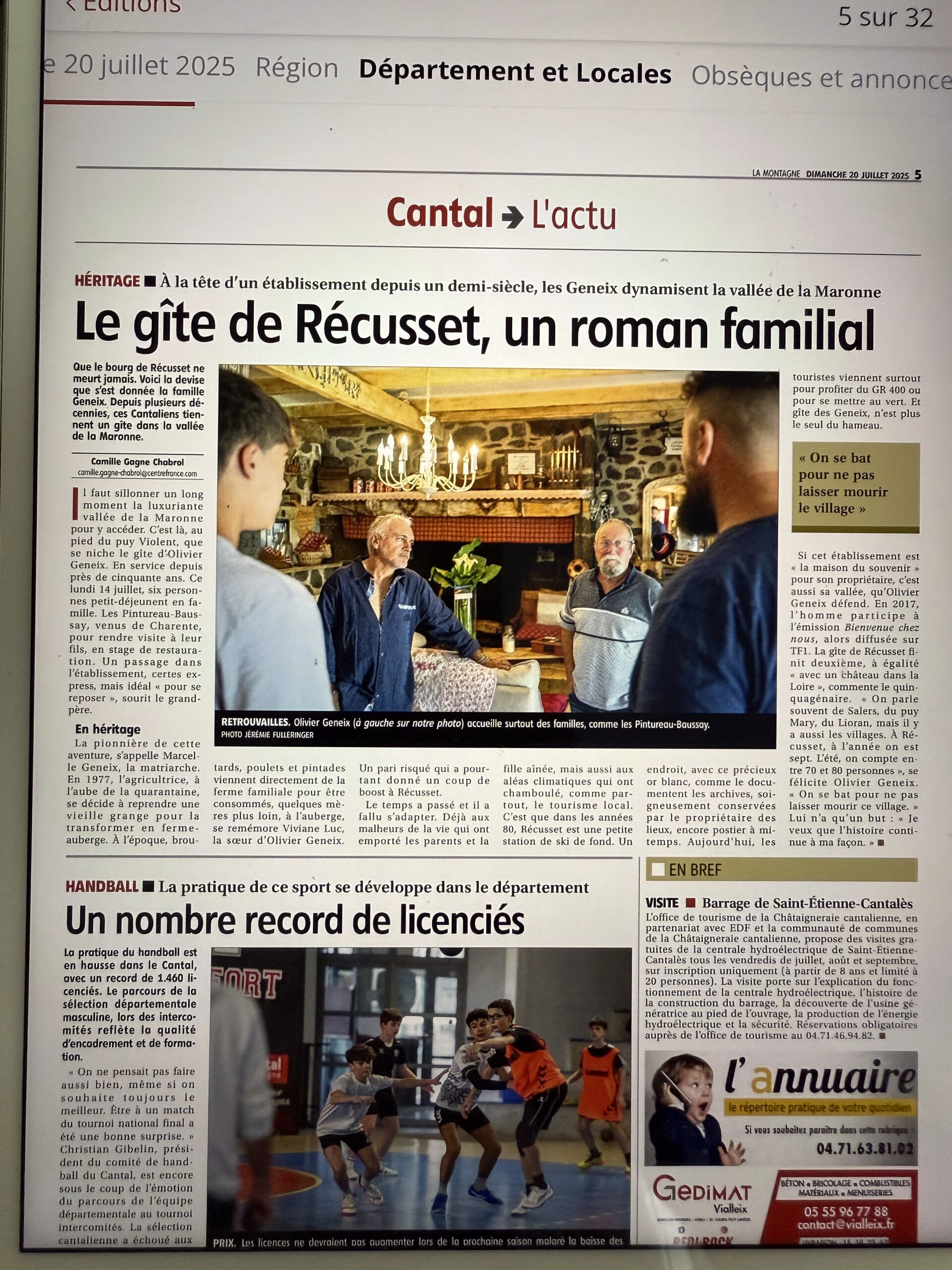 Bienvenue à la Maison d’Olivier, un gîte de charme niché au cœur du Cantal, dans le hameau de Réclusset, au pied majestueux du Puy Violent. L'idée de créer cet havre de paix est née d'un désir profond d'offrir un séjour authentique, chaleureux et profondément ressourçant. Ici, loin du tumulte, nous prenons le temps de respirer, de se retrouver, et de savourer la simplicité et la beauté des grands espaces. La Maison d’Olivier est avant tout une maison de famille, chargée d’histoire et de souvenirs. Autrefois ferme, puis petite auberge créée par notre famille, elle a toujours été un lieu d’accueil, de partage et de convivialité. Ces valeurs sont restées intactes et continuent de vivre aujourd’hui à travers les séjours des voyageurs qui y font halte. Le cœur de la maison bat autour de la grande cheminée traditionnelle, le cantou, témoin des soirées d’hiver animées et des histoires racontées au coin du feu.